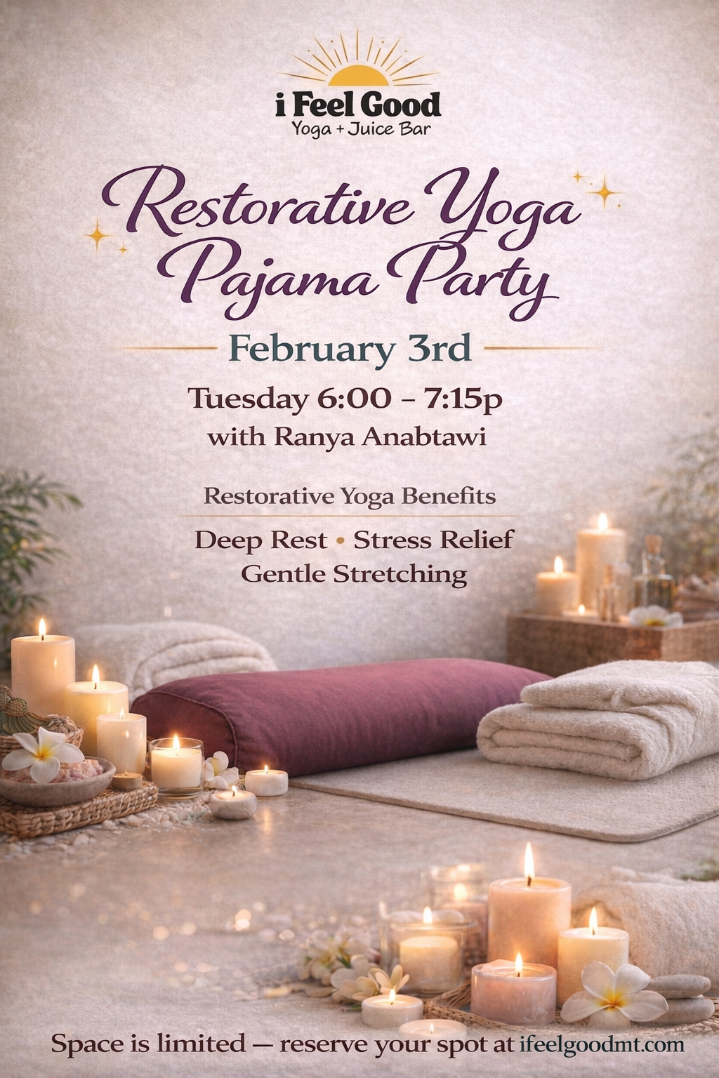 Restorative Yoga Pajama Party, February 3rd, 6pm - 7:15pm